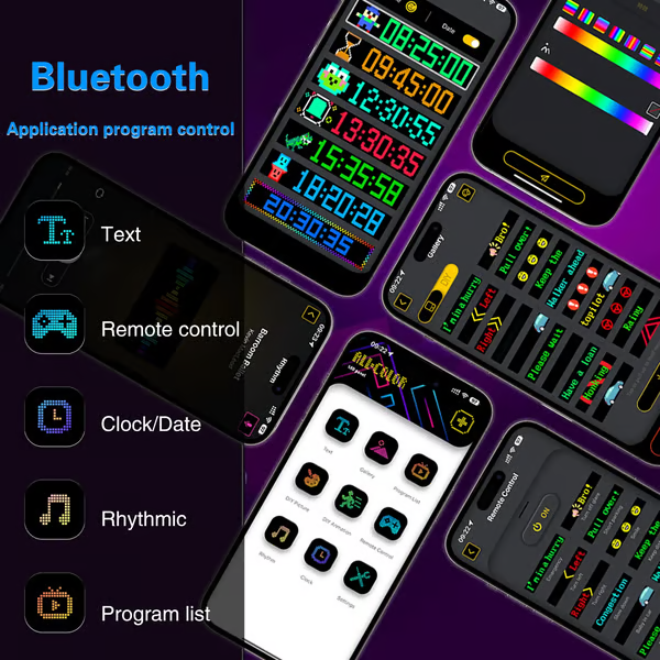 The LED sign is controlled by an app connected via Bluetooth, which supports connecting multiple LED displays at the same time, making your store more eye-catching, the app has built-in many interesting modes and animations. Your phone makes it easy to customize templates and fun texts to personalize your store.