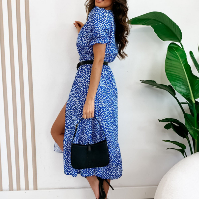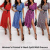 Paketet innehåller:1*Kvinnor tryckta V-halsade midiklänningar med delad hals
