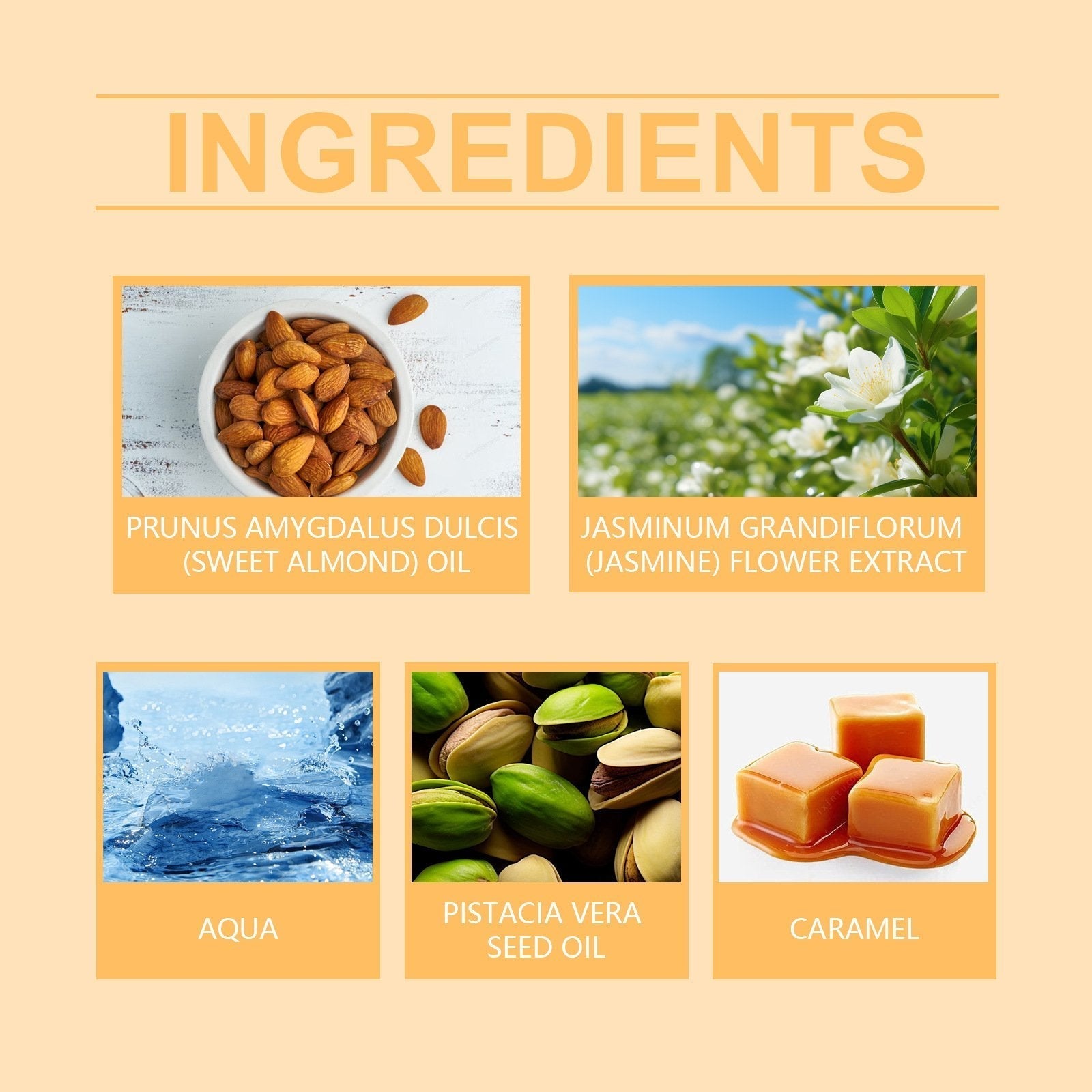 Toppnoterna har behagliga pistasch- och mandelaromer. Följt av lukten av solros och jasmin. Grundtonen har romantisk vaniljsmak, salt karamell och sandeltrÀ, vilket ger dig en bestÄende och djup doft.