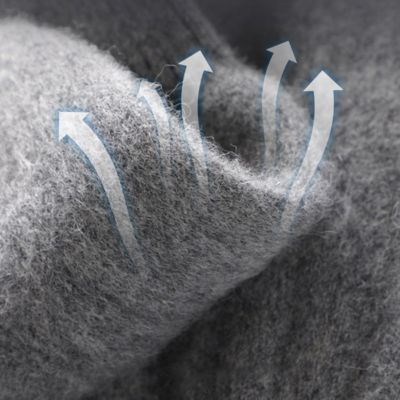 Tyget har god värmeisolering och är skonsamt mot huden. Det förhindrar effektivt att luft från utsidan tränger in och att varm luft från insidan försvinner.